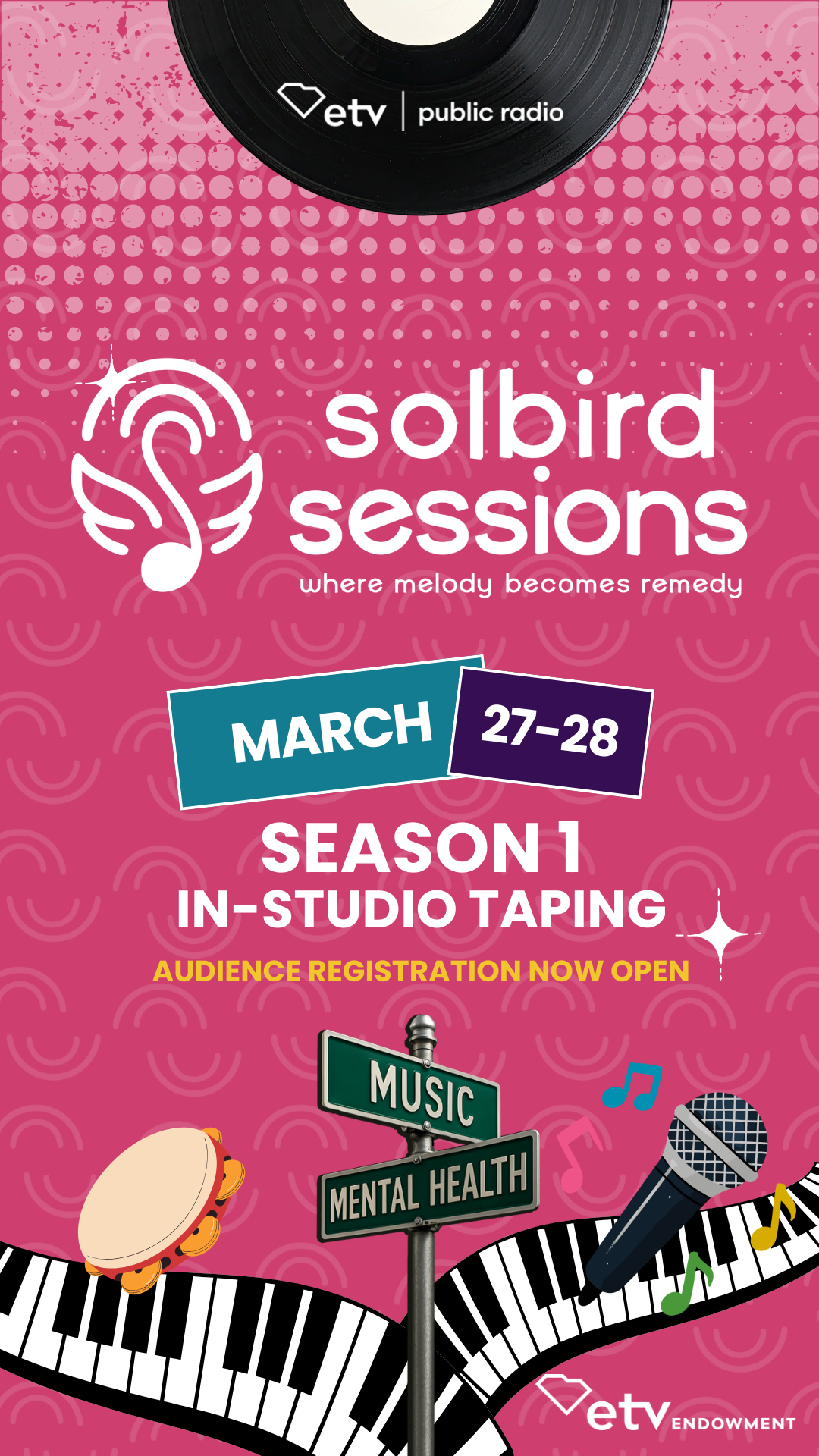 Season one of Solbird Sessions will be taped before a live studio audience at SCETV Studios in Columbia across two production days: